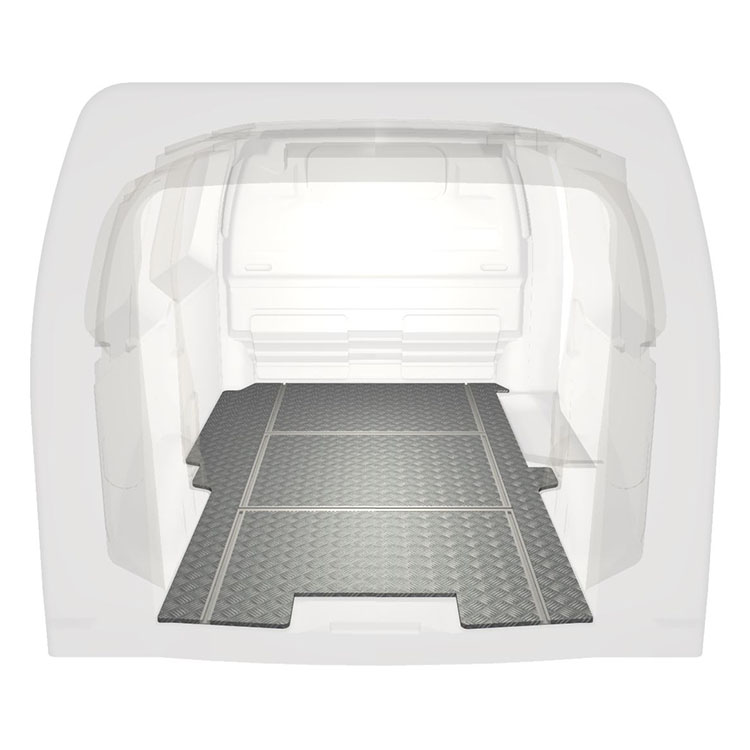 Unsere leichten und robusten Fahrzeugböden mit Querschienen sind für verschiedene Fahrzeugmodelle erhältlich. Sie werden mit einem rutschfesten Trittblech aus Aluminium und Schienen (längs und quer) für eine schnelle und sichere Montage von Regalsystemen und anderem Zubehör geliefert. Für die Bodenverlegung ist kein Bohren erforderlich, sondern lediglich ein Hochleistungsklebstoff. Dadurch wird ein stärkerer Halt als mit Schrauben und Muttern erzielt. Zudem mindert dieses Verfahren nicht den Restwert Ihres Fahrzeugs.
