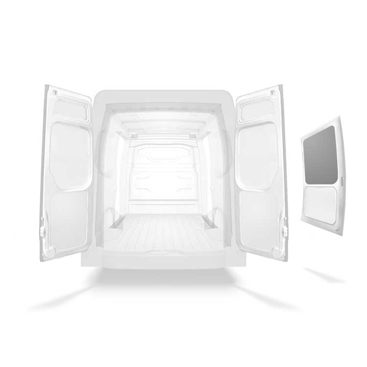 Unsere zugeschnittenen Seitentürverkleidungen sind für verschiedene Türdesigns und -konfigurationen für zahlreiche Nutzfahrzeuge erhältlich. Die Türverkleidungen sind leicht und erwecken im Fahrzeuginneren einen professionellen Eindruck. Sie sind als Vollverkleidungen für die gesamte Tür oder als Teilverkleidungen erhältlich, die zwischen die Streben einer Tür passen. Die Türverkleidungen können leicht mit Hochleistungsklebstoff montiert werden, ohne das Fahrzeug zu beschädigen. Jedoch ist auch die herkömmliche Montage mit Schrauben möglich.