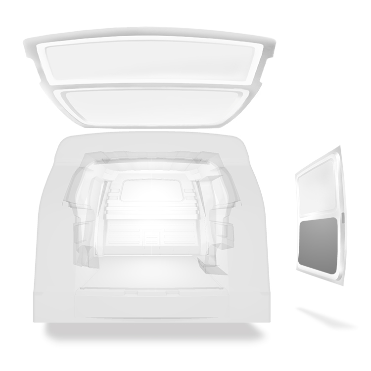 Unsere zugeschnittenen Seitentürverkleidungen sind für verschiedene Türdesigns und -konfigurationen für zahlreiche Nutzfahrzeuge erhältlich. Die Türverkleidungen sind leicht und erwecken im Fahrzeuginneren einen professionellen Eindruck. Sie sind als Vollverkleidungen für die gesamte Tür oder als Teilverkleidungen erhältlich, die zwischen die Streben einer Tür passen. Die Türverkleidungen können leicht mit Hochleistungsklebstoff montiert werden, ohne das Fahrzeug zu beschädigen. Jedoch ist auch die herkömmliche Montage mit Schrauben möglich.