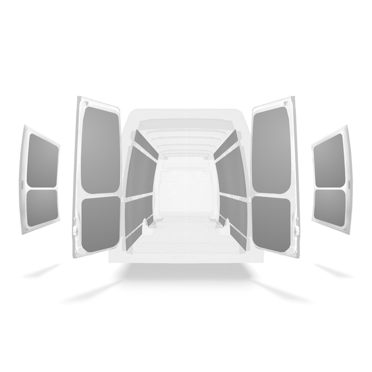 Beachten Sie außerdem, dass das in den Sets enthaltene Montagematerial für die Montage an der Karosserie vorgesehen ist. Die Halterungen für die beschädigungsfreie Montage an Boden und Wandschienen werden separat geliefert.