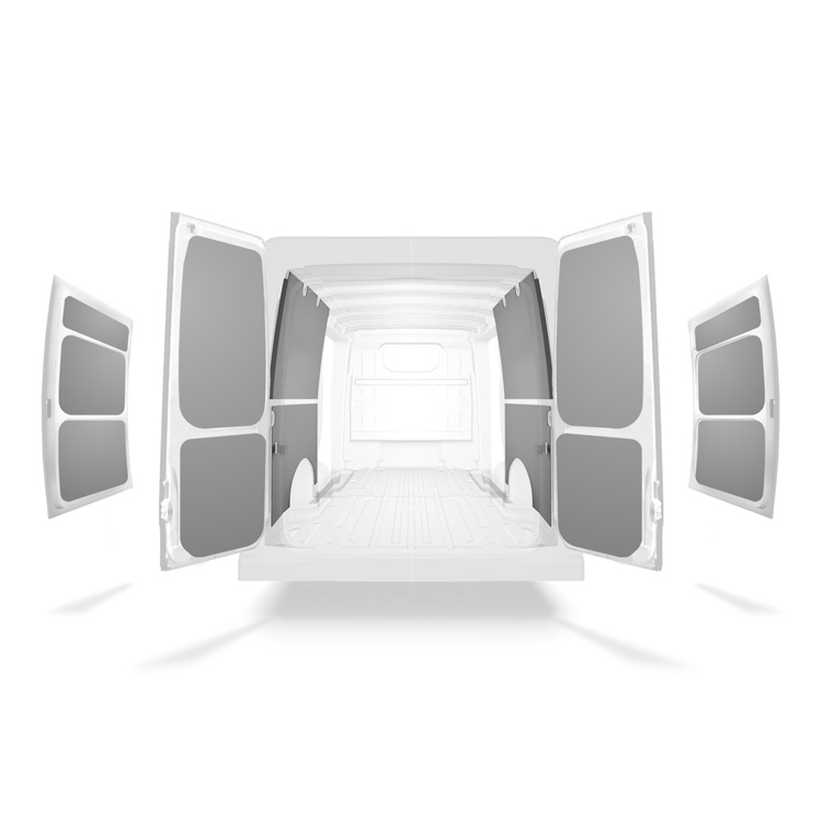 Beachten Sie außerdem, dass das in den Sets enthaltene Montagematerial für die Montage an der Karosserie vorgesehen ist. Die Halterungen für die beschädigungsfreie Montage an Boden und Wandschienen werden separat geliefert.