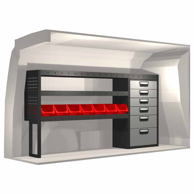 Dieses Einrichtungssystem wurde entworfen, um optimale Passgenauigkeit und bestmögliche Funktionalität und Sicherheit zu gewährleisten. Es ist für den professionellen Gebrauch entwickelt worden, ist flexibel und zur Anwendung in verschiedenen Geschäftsbereichen bestimmt. Universal- und Bodenwinkel sind enthalten.