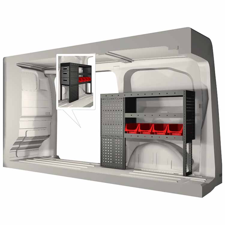 Dieses Einrichtungssystem wurde entworfen, um optimale Passgenauigkeit und bestmögliche Funktionalität und Sicherheit zu gewährleisten. Es ist für den professionellen Gebrauch entwickelt worden, ist flexibel und zur Anwendung in verschiedenen Geschäftsbereichen bestimmt. Universal- und Bodenwinkel sind enthalten.