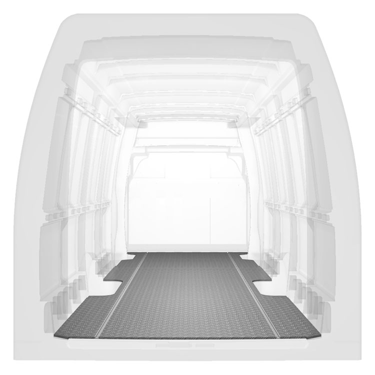 Leichte und robuste, extra lange Böden für einen Iveco Daily werden mit einem rutschfesten Trittblech aus Aluminium und Schienen (längs) für eine schnelle und sichere Montage von Regalsystemen und anderem Zubehör geliefert.