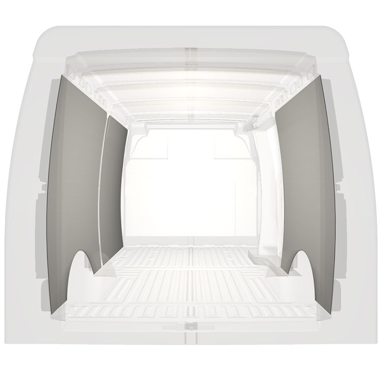 Leichte Vollverkleidung für die Innenwände eines Iveco Daily mit Seitentür rechts.Die Verkleidungen schaffen ein helles und angenehmes Arbeitsumfeld und sind leicht zu reinigen.