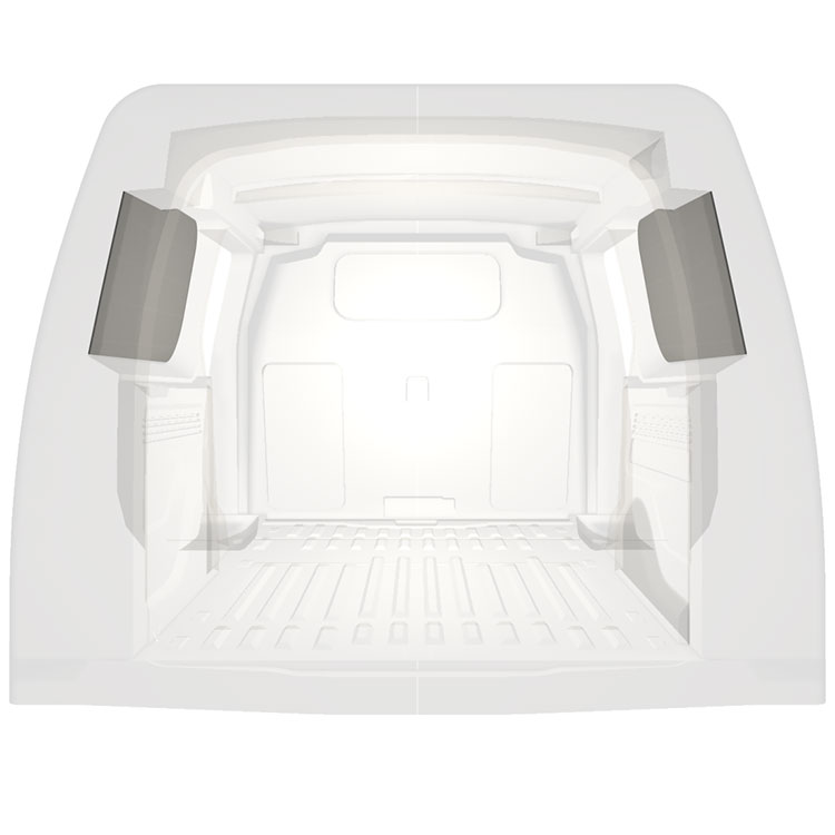 Leichte, zugeschnittene Verkleidung für die Innenwände eines Berlingo/Partner/Combo 19- mit beidseitigen Seitentüren. Die Verkleidungen schaffen ein helles und angenehmes Arbeitsumfeld und sind leicht zu reinigen.