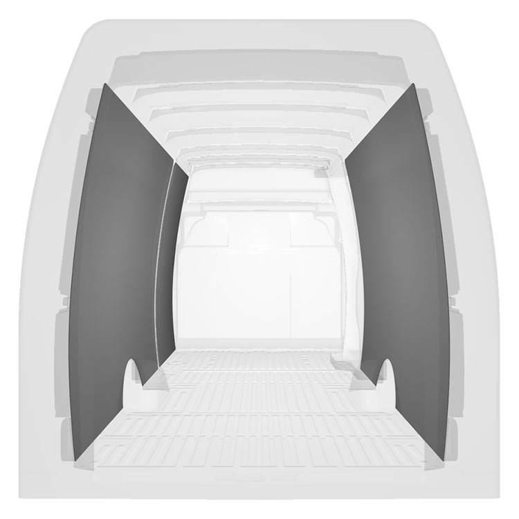 Verkleidungen für Seiten-, Hecktür und Dachhimmel sind separat erhältlich. Das Installationsmaterial wird ebenfalls separat geliefert.