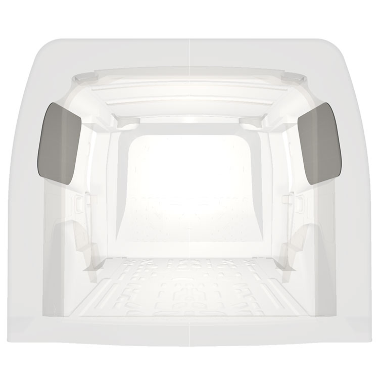 Leichte, zugeschnittene Verkleidung für die Innenwände eines Opel Combo / Fiat Doblò mit beidseitigen Seitentüren. Die Verkleidungen schaffen ein helles und angenehmes Arbeitsumfeld und sind leicht zu reinigen.