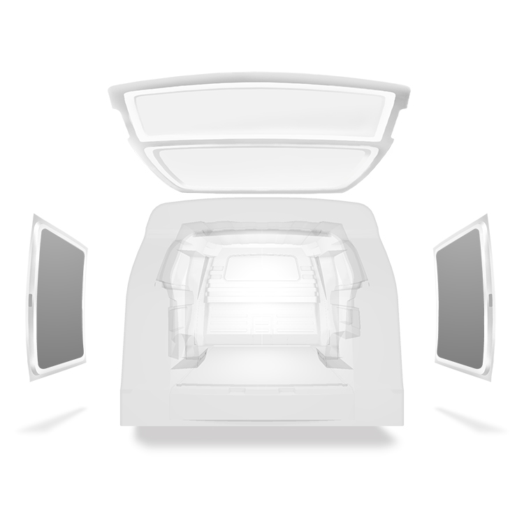 Further van liners for the vehicle inner walls, rear doors and roof are available separately. Installation material is also supplied separately.