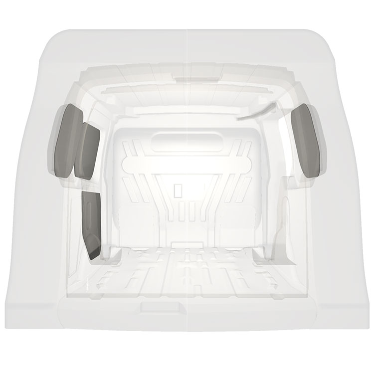 Verkleidungen für Seiten-, Hecktür und Dachhimmel sind separat erhältlich. Das Installationsmaterial wird ebenfalls separat geliefert.