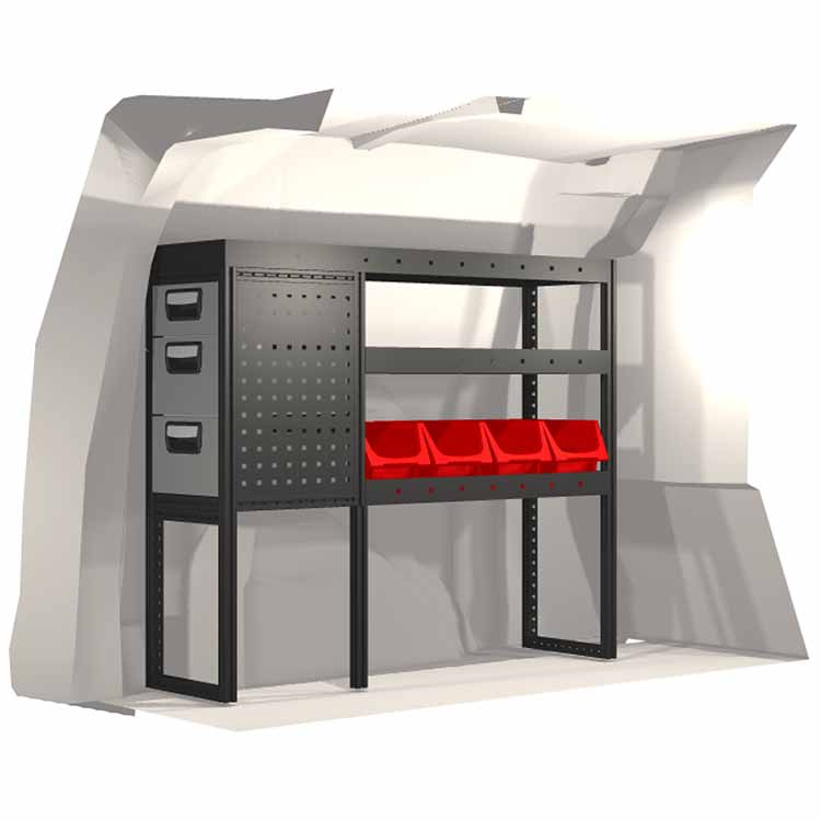 Dieses Einrichtungssystem wurde entworfen, um optimale Passgenauigkeit und bestmögliche Funktionalität und Sicherheit zu gewährleisten. Es ist für den professionellen Gebrauch entwickelt worden, ist flexibel und zur Anwendung in verschiedenen Geschäftsbereichen bestimmt. Universal- und Bodenwinkel sind enthalten.