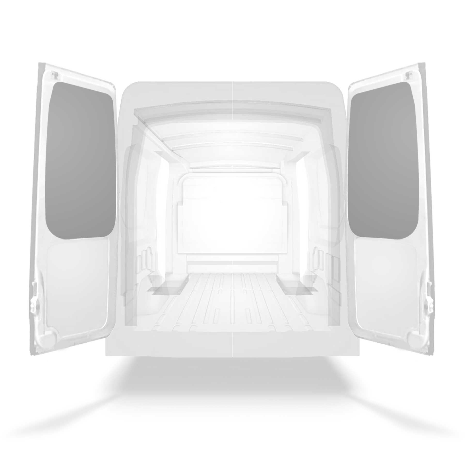 Leichte Verkleidung für den oberen Teil der Hecktür eines Ford Transit mit Doppeltüren. Die Türverkleidung erweckt einen professionellen Eindruck, schützt Ihr Fahrzeug und ist leicht zu reinigen.
