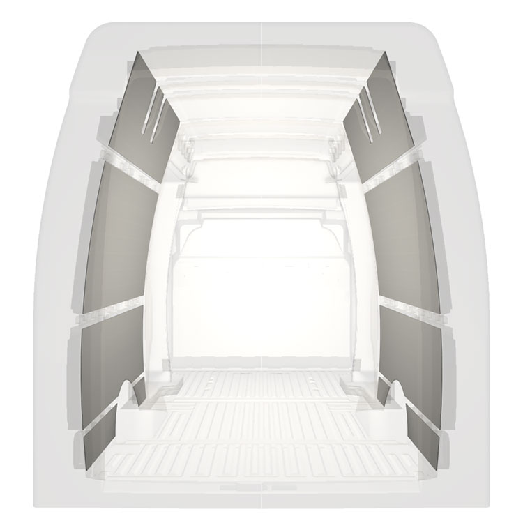 Verkleidungen für Seiten-, Hecktür und Dachhimmel sind separat erhältlich. Das Installationsmaterial wird ebenfalls separat geliefert.