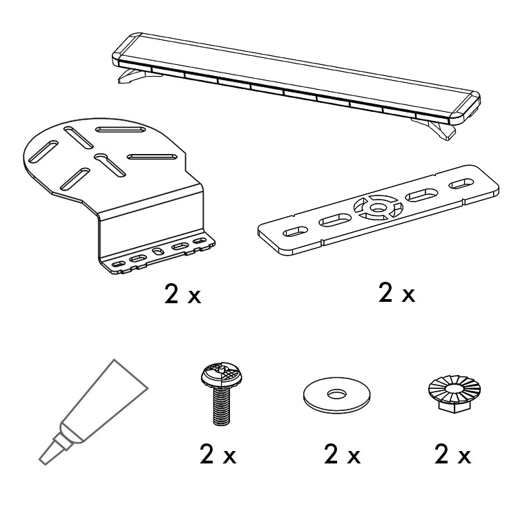 Das Set umfasst einen Lichtbalken und eine komplette Auswahl an Halterungen für die direkte Montage an den OEM-Befestigungspunkten des Fahrzeugs. Indem Sie die vorhandenen Befestigungspunkte nutzen, müssen in das Fahrzeug keine unnötigen Löcher gebohrt werden. So wird Korrosion vermieden und der Restwert des Fahrzeugs bleibt erhalten.