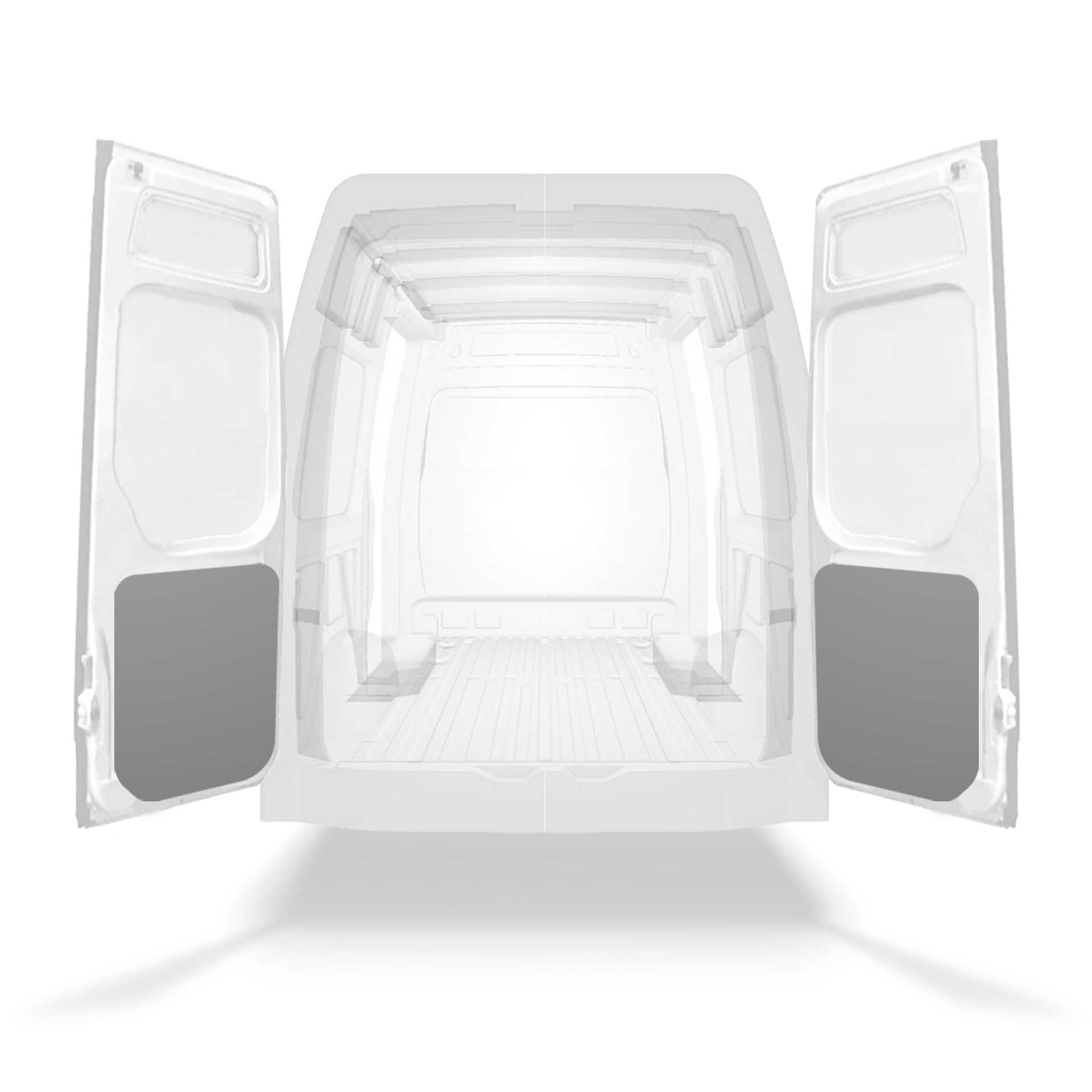 Leichte Verkleidung für den unteren Teil der Hecktür eines Mercedes Sprinter mit Doppeltüren. Die Türverkleidung erweckt einen professionellen Eindruck, schützt Ihr Fahrzeug und ist leicht zu reinigen.