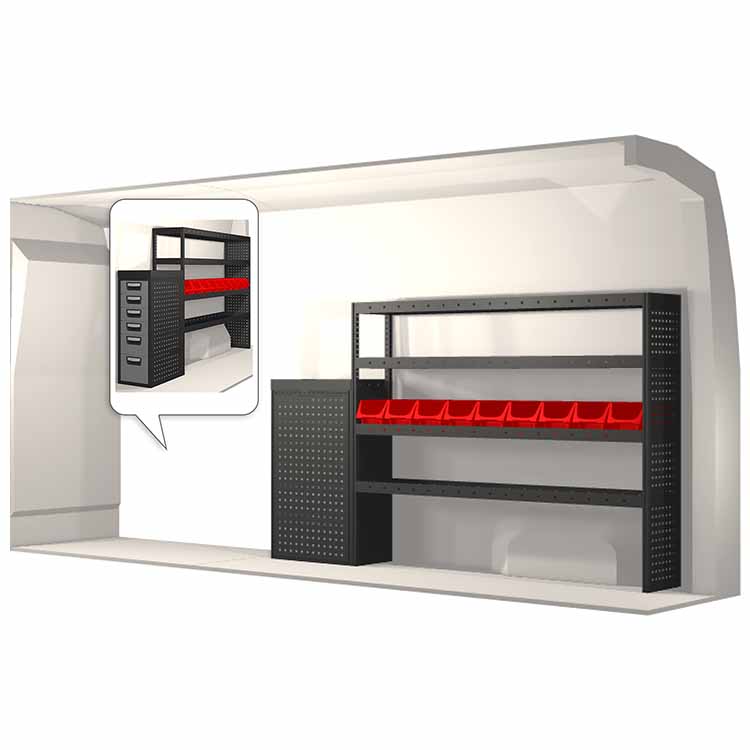Dieses Einrichtungssystem wurde entworfen, um optimale Passgenauigkeit und bestmögliche Funktionalität und Sicherheit zu gewährleisten. Es ist für den professionellen Gebrauch entwickelt worden, ist flexibel und zur Anwendung in verschiedenen Geschäftsbereichen bestimmt. Universal- und Bodenwinkel sind enthalten.