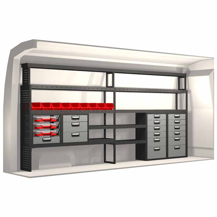 Dieses Einrichtungssystem wurde entworfen, um optimale Passgenauigkeit und bestmögliche Funktionalität und Sicherheit zu gewährleisten. Es ist für den professionellen Gebrauch entwickelt worden, ist flexibel und zur Anwendung in verschiedenen Geschäftsbereichen bestimmt. Universal- und Bodenwinkel sind enthalten.