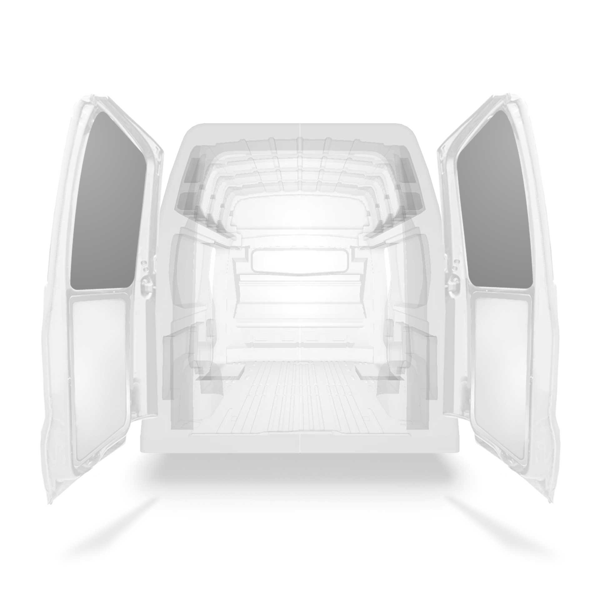 Diese zugeschnittenen Hecktürverkleidungen wurden so konzipiert, dass sie genau in die oberen Abschnitte der Doppeltüren des Fahrzeugs passen.