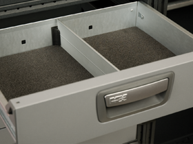 Mit den herausnehmbaren Trennwänden können Schubkastenmodule einfach in kleinere Fächer unterteilt werden. Vorgesehen für 486 mm tiefe Schubkästen. Stückweise Lieferung mit zwei Befestigungen.