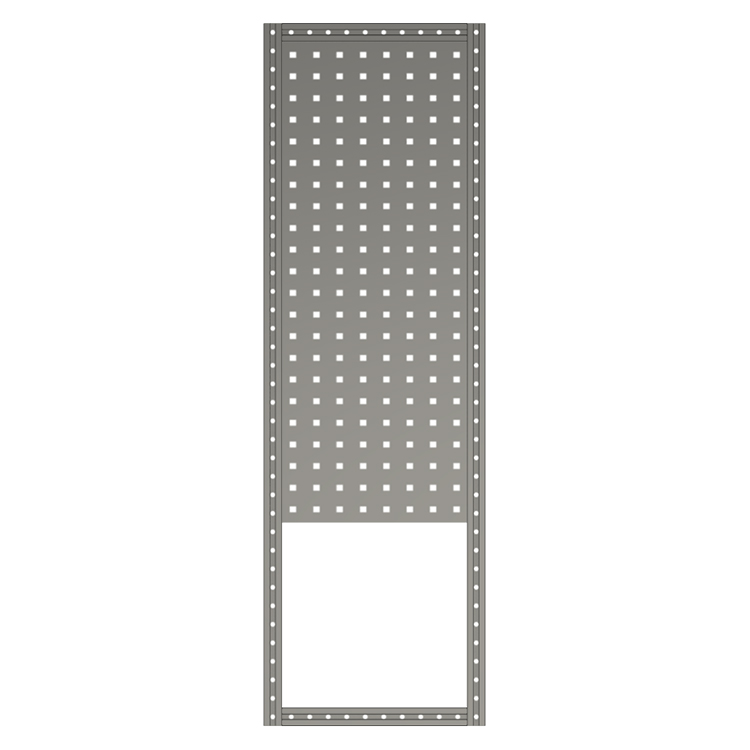 Abdeckblech für Regalseitenteile mit gekürztem Lochblech, um den Raum zwischen dem Profil und Umgebung zu reduzieren.