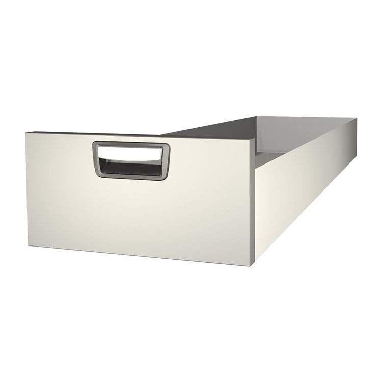 Robuste, extralange Schublade für den Einbau in einem Schubladenmodul. Die aus Aluminium gefertigte Schublade ist serienmäßig kugelgelagert. Die Mischung aus festen und flexiblen Lagern macht die Schublade stabil und einfach zu bedienen.
