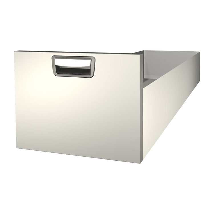 Robuste, extralange Schublade für den Einbau in einem Schubladenmodul. Die aus Aluminium gefertigte Schublade ist serienmäßig kugelgelagert. Die Mischung aus festen und flexiblen Lagern macht die Schublade stabil und einfach zu bedienen.
