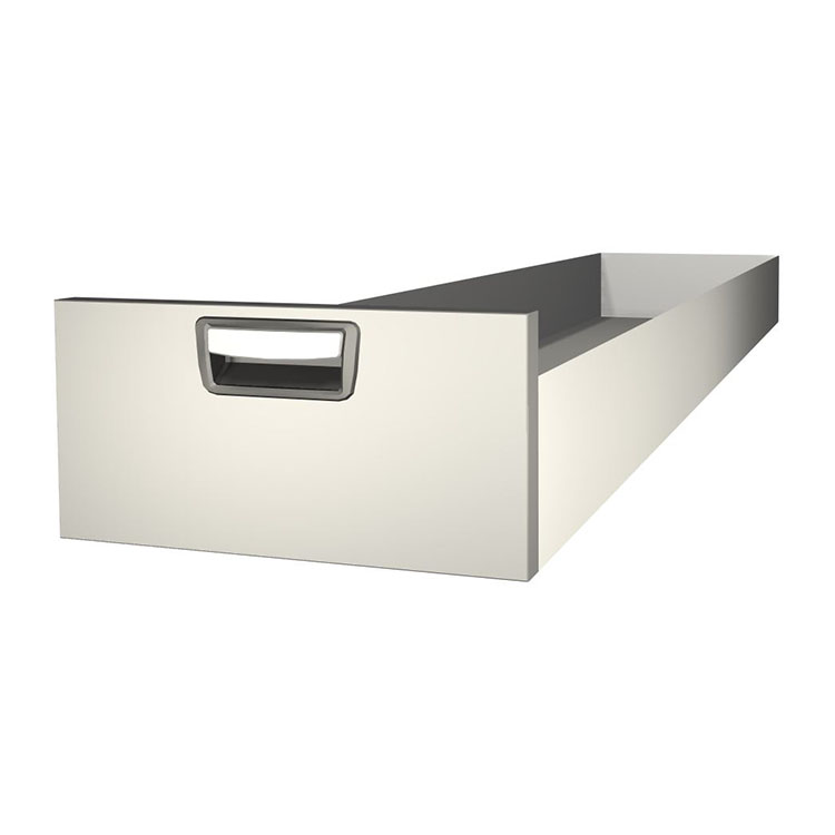 Robuste, extralange Schublade für den Einbau in einem Schubladenmodul. Die aus Aluminium gefertigte Schublade ist serienmäßig kugelgelagert. Die Mischung aus festen und flexiblen Lagern macht die Schublade stabil und einfach zu bedienen.