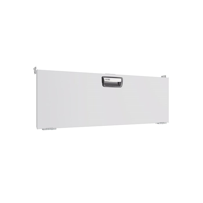 Herunterklappbare Klappen sind an beiden Seiten mit Gasfedern bestückt, die für ein sanftes Öffnen und Schließen sorgen. Der Öffnungswinkel beträgt 90°. Im Klappengriff ist eine Sperre integriert, die ein selbsttätiges Öffnen der Klappe während der Fahrt verhindert. Passend auch für Radkastengestelle mit optionaler Werkbankplatte. Wenn Sie eine Klappe zwischen zwei Regalseitenteilen anbringen möchten, benötigen Sie dafür ein Montagegestell.
