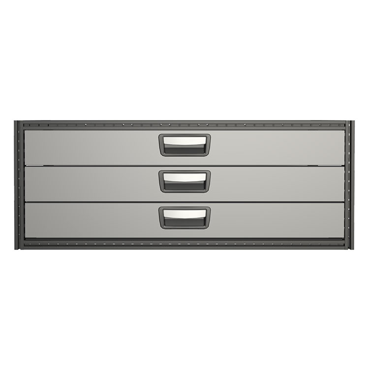 Standardmäßig sind unsere Schubkästen mit Kugelscheinen ausgestattet. Sie haben eine Ladekapazität von 60 kg und eine maximale Belastungskapazität von 150 kg pro Schubkastenmodul. Die Schubkästen sind vollständig herausziehbar und mit Auszugssperren versehen. Zur optimalen Ausnutzung kann das Schubkastenmodul mit speziellem Zubehör ausgestattet werden, wie z. B. Schaumstoffeinlagen, Einsatzboxen und Trennwände. Zur Gewichtsoptimierung sind Abdeckplatten und Lochbleche optional erhältlich.