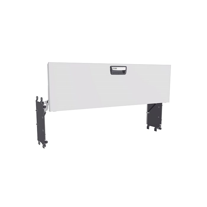 Die Klappen, mit Gasfedern bestückt, öffnen sich nach oben. So kann der Bodenbereich maximal genutzt werden, die Klappe lässt sich einfacher öffnen und schließen und die Ergonomie für den Benutzer wird optimiert. Bitte beachten Sie, dass senkrecht aufgehende Gasfederklappen nicht mit Werkbankplatten kombinierbar sind.