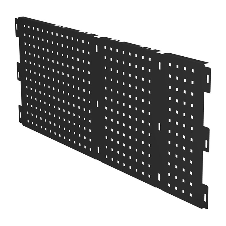 Werkzeugblech für extralange Schubladenmodule. Sie schützt die Schublade und gibt ihr gleichzeitig ein schönes Design. Die Werkzeugtafel ist mit 9 mm großen Löchern im Abstand von 34 mm gestanzt, was die Befestigung von Werkzeughaltern und anderem Zubehör ermöglicht. Wird mit Schrauben montiert (nicht im Lieferumfang enthalten).