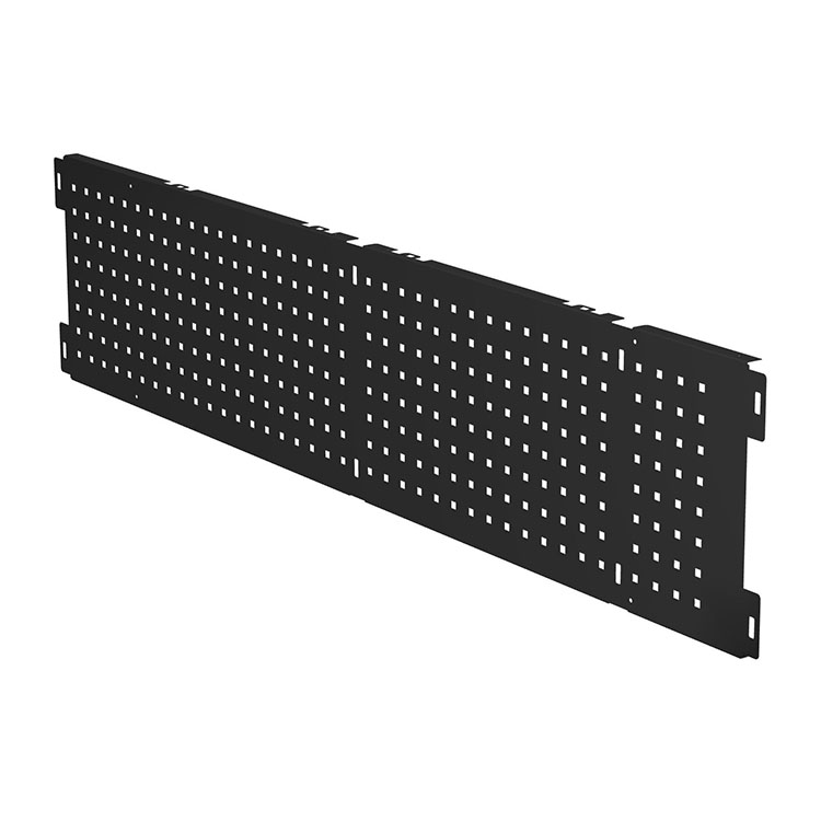 Werkzeugblech für extralange Schubladenmodule. Sie schützt die Schublade und gibt ihr gleichzeitig ein schönes Design. Die Werkzeugtafel ist mit 9 mm großen Löchern im Abstand von 34 mm gestanzt, was die Befestigung von Werkzeughaltern und anderem Zubehör ermöglicht. Wird mit Schrauben montiert (nicht im Lieferumfang enthalten).