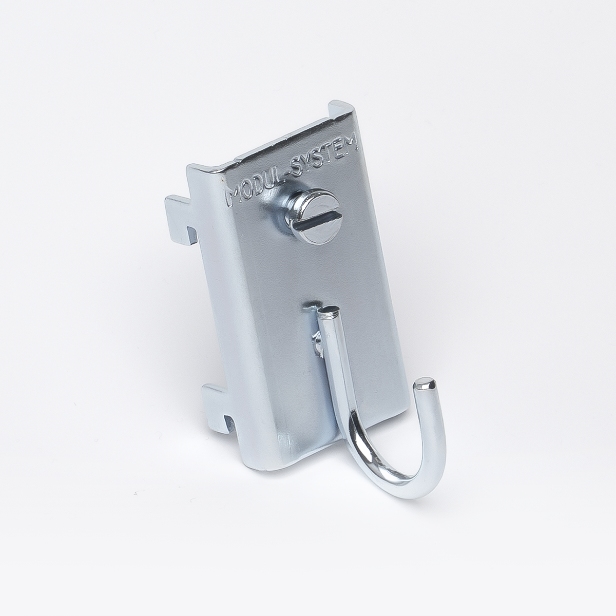 Werkzeughalter, der auf alle unsere Lochbleche und Wandschienen passt. Der Halter hat vier speziell entwickelte Sicherungshaken und wird mit einer großen Schraube arretiert.