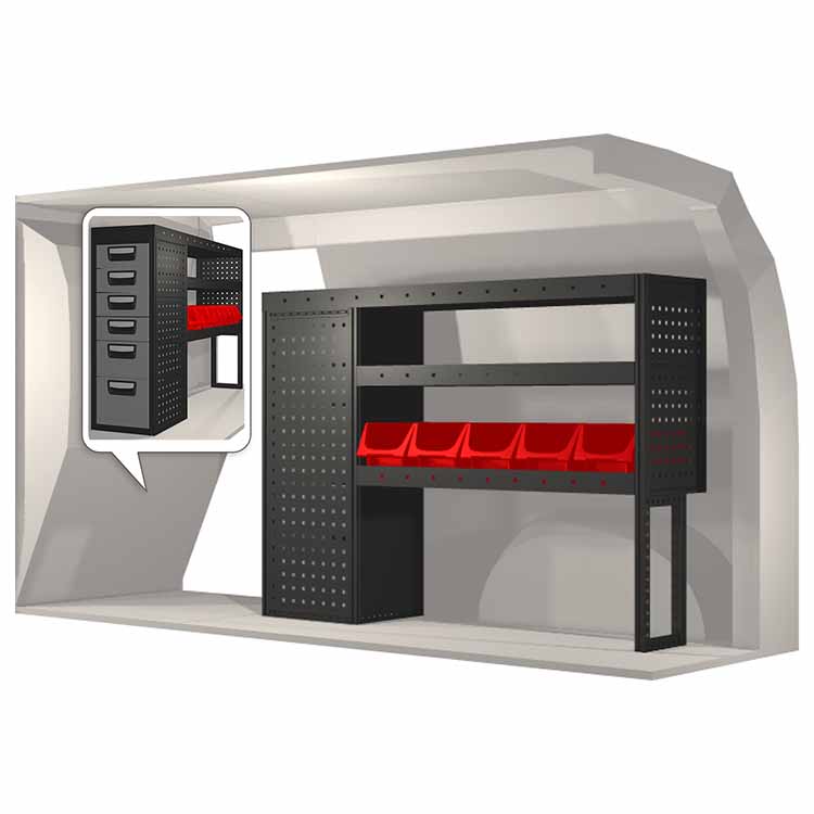 Dieses Einrichtungssystem wurde entworfen, um optimale Passgenauigkeit und bestmögliche Funktionalität und Sicherheit zu gewährleisten. Es ist für den professionellen Gebrauch entwickelt worden, ist flexibel und zur Anwendung in verschiedenen Geschäftsbereichen bestimmt. Universal- und Bodenwinkel sind enthalten.