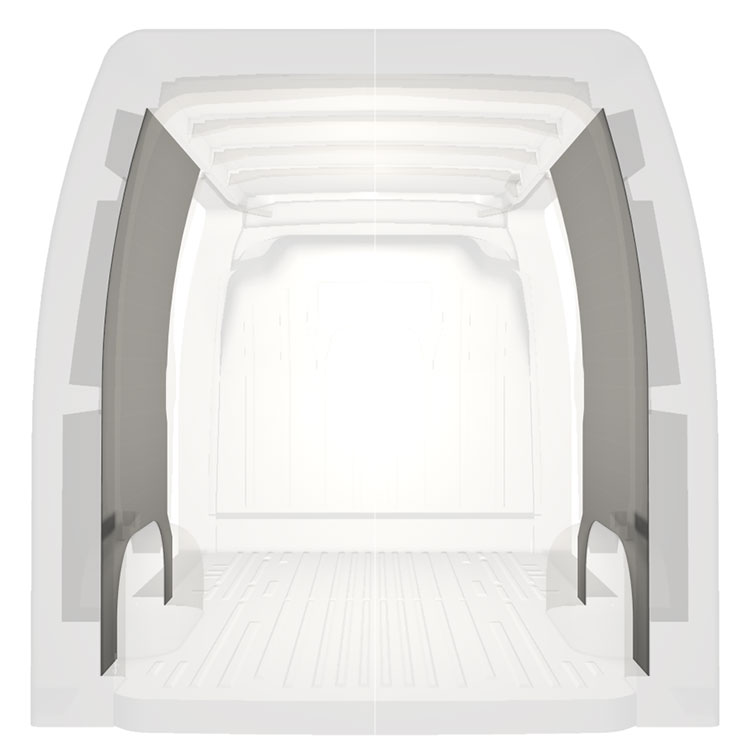Verkleidungen für Seiten-, Hecktür und Dachhimmel sind separat erhältlich. Das Installationsmaterial wird ebenfalls separat geliefert.