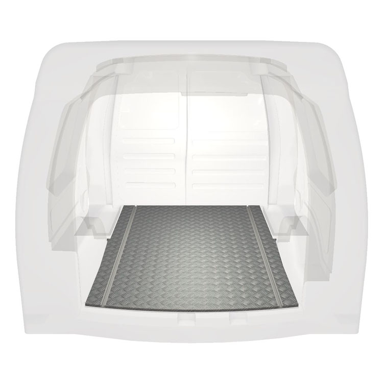 Leichte und robuste, extra lange Böden für einen Volkswagen Caddy werden mit einem rutschfesten Trittblech aus Aluminium und Schienen (längs) für eine schnelle und sichere Montage von Regalsystemen und anderem Zubehör geliefert.