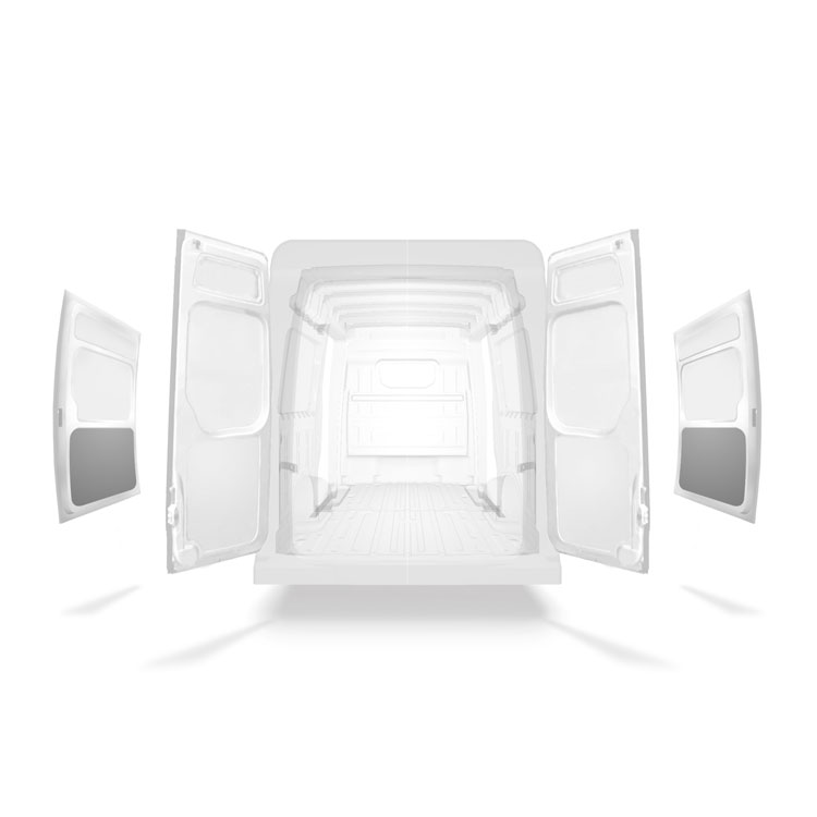 Leichte Verkleidung für den unteren Teil der Seitentür eines Volkswagen Transporter T6 Volkswagen Crafter / MAN TGE mit zwei Seitentüren. Die Verkleidung verringert Verschleiß und hilft, den Restwert Ihres Fahrzeugs zu erhalten.