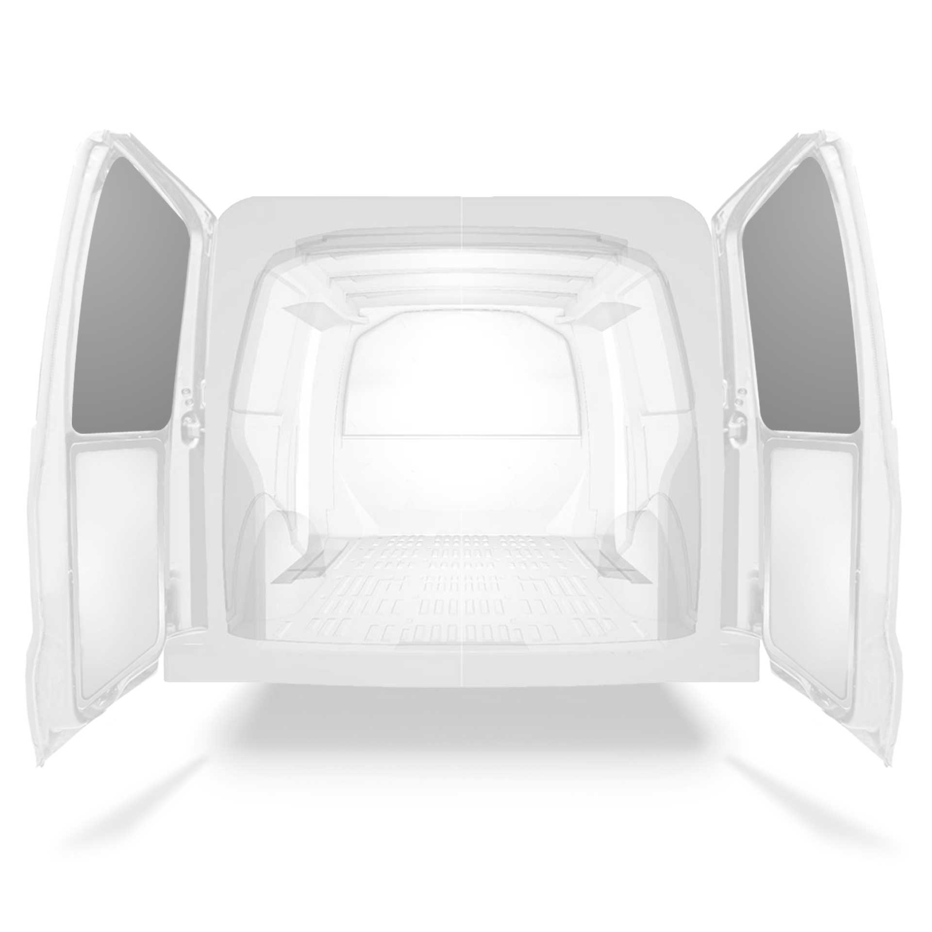 Diese zugeschnittenen Hecktürverkleidungen wurden so konzipiert, dass sie genau in die oberen Abschnitte der Doppeltüren des Fahrzeugs passen.