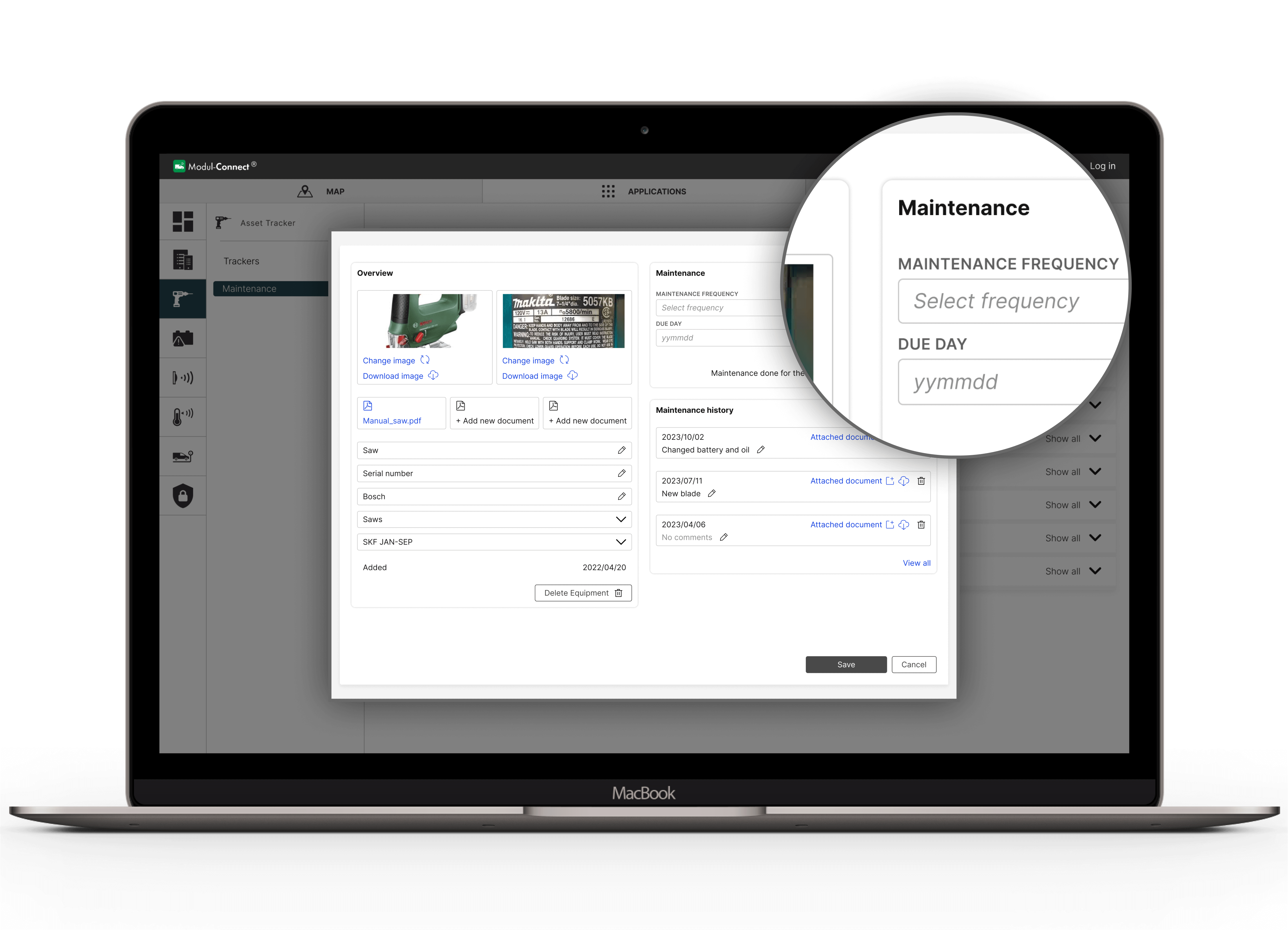 Modul-Connect operates as both a mobile application and a web-based portal. The mobile app, that now also can be mirrored to the vehicle screen, allows users to monitor and control electrical equipment installed in the vehicle. The web portal provides fleet managers and users with access to historical records from applications and tool maintenance services. The portal also includes a map that displays the location and status of each vehicle in the fleet.