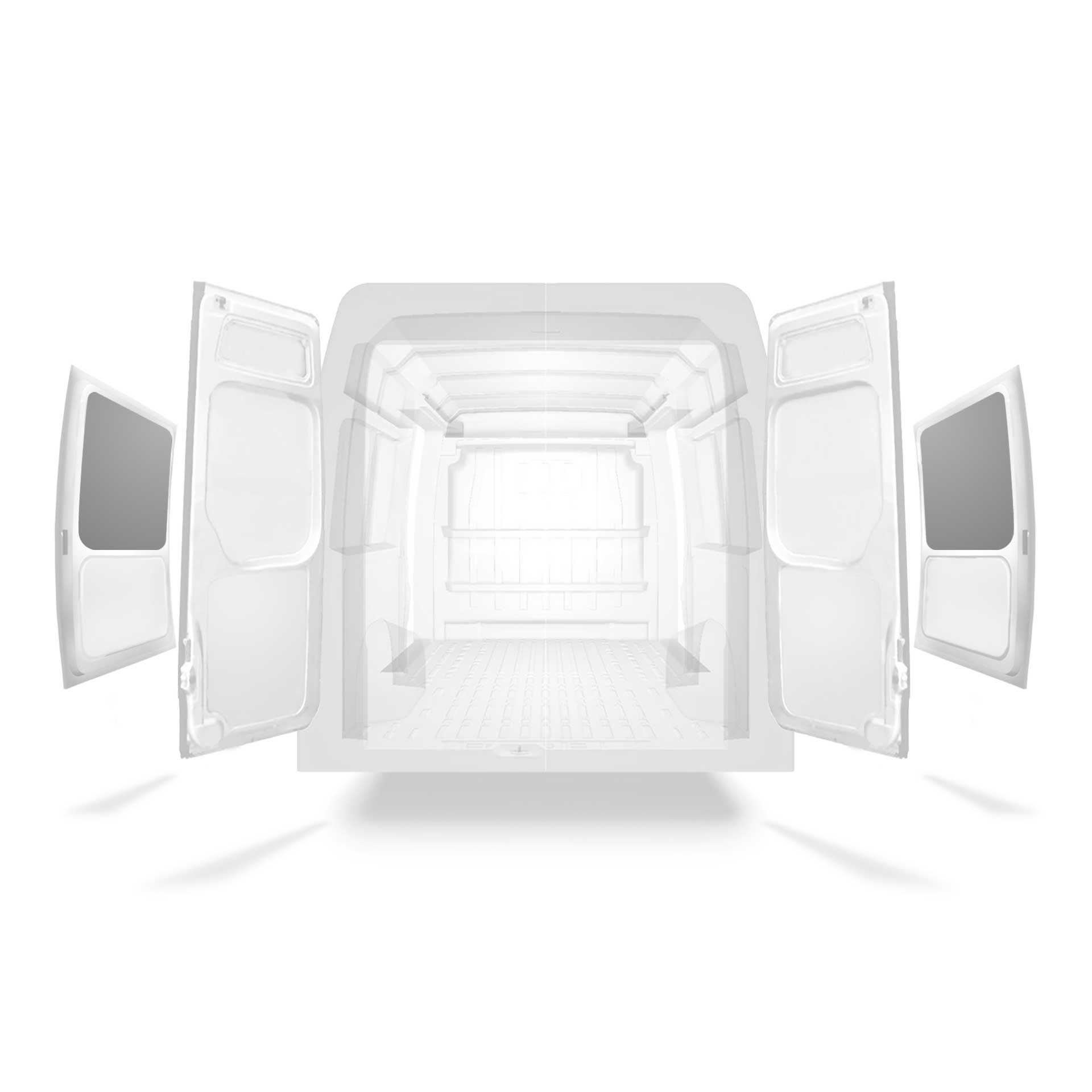 Revêtement léger pour la partie supérieure de la porte latérale d’une Citroën Jumper / Peugeot Boxer / Fiat Ducato avec doubles portes. Le revêtement réduira l’usure normale à l'intérieur et contribuera à maintenir la valeur résiduelle de l’utilitaire.