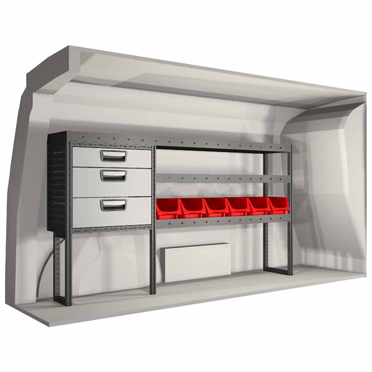 Ce système d’aménagement a été spécialement conçu pour assurer une adaptation optimale ainsi que la meilleure fonctionnalité et sécurité possible. Il a été développé pour un usage professionnel, est flexible et est destiné à des métiers de services dans des domaines variés. Toutes les étagères sont équipées de tapis caoutchouc, et tous les tiroirs de tapis mousse. Les composants d’assemblage et de fixation sont inclus.