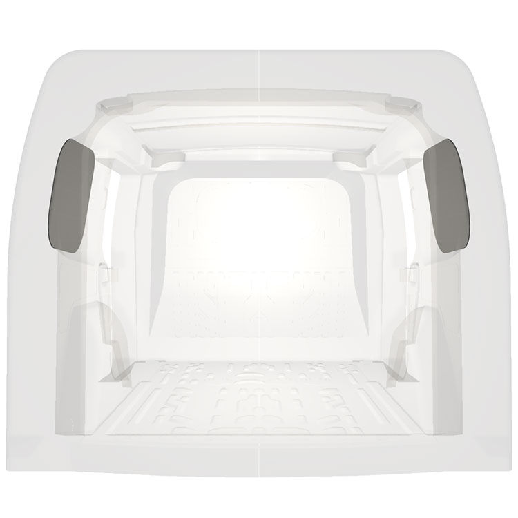 Revêtement léger pré-découpé pour les parois intérieures d’une Opel Combo / Fiat Doblò avec doubles portes latérales. Les parois créeront un environnement professionnel lumineux et convivial et se nettoient facilement.