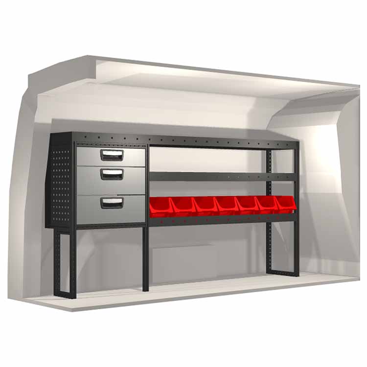 Ce système d’aménagement a été spécialement conçu pour assurer une adaptation optimale ainsi que la meilleure fonctionnalité et sécurité possible. Il a été développé pour un usage professionnel, est flexible et est destiné à des métiers de services dans des domaines variés. Toutes les étagères sont équipées de tapis caoutchouc, et tous les tiroirs de tapis mousse. Les composants d’assemblage et de fixation sont inclus.
