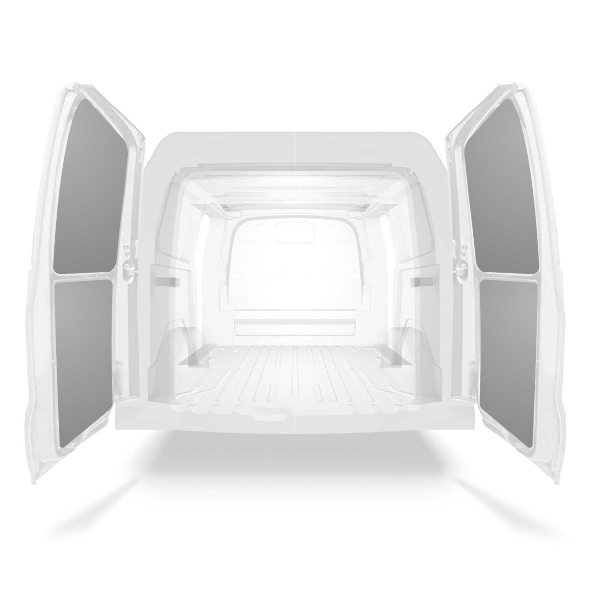 Revêtement de parois léger pour portes arrières d’une Ford Transit Custom avec doubles portes. Conçus pour offrir une finition professionnelle à l’intérieur, les revêtements de porte préservent l’utilitaire et se nettoient facilement.