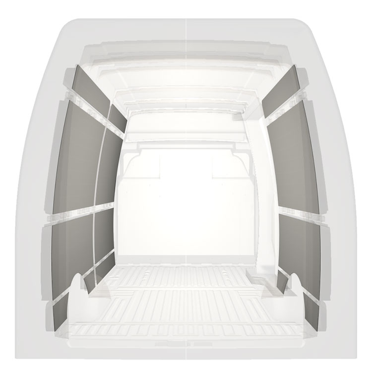 Afin d’optimiser le poids, les revêtements pré-découpés sont fabriqués de manière à adapter uniquement l’espace entre les poutres du véhicule, veillant ainsi à ne pas être gênant et à optimiser l’espace.