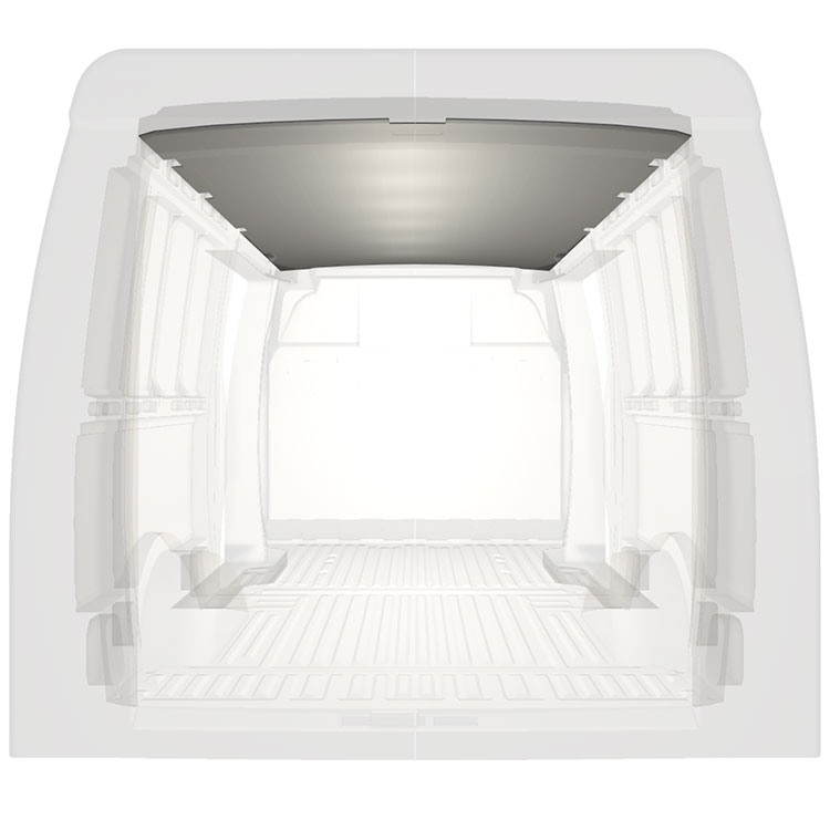 Revêtement léger pour toit d’une Iveco Daily. Le revêtement de toit créera une finition de travail lumineuse à l'intérieur et un environnement professionnel convivial.