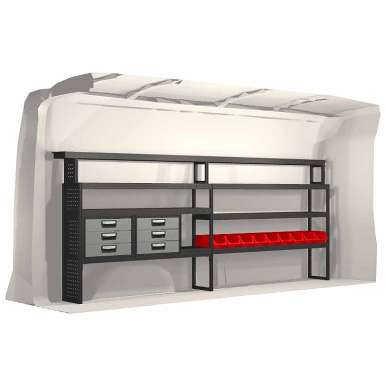 Ce système d’aménagement a été spécialement conçu pour assurer une adaptation optimale ainsi que la meilleure fonctionnalité et sécurité possible. Il a été développé pour un usage professionnel, est flexible et est destiné à des métiers de services dans des domaines variés. Toutes les étagères sont équipées de tapis caoutchouc, et tous les tiroirs de tapis mousse. Les composants d’assemblage et de fixation sont inclus.