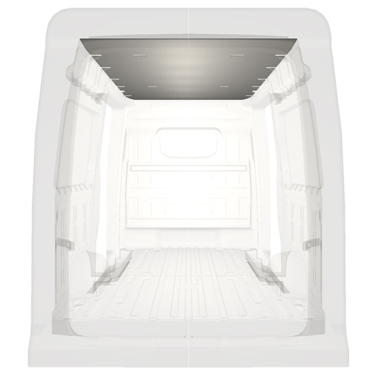 Revêtement léger pour toit d’une Volkswagen Crafter / MAN TGE . Le revêtement de toit créera une finition de travail lumineuse à l'intérieur et un environnement professionnel convivial.