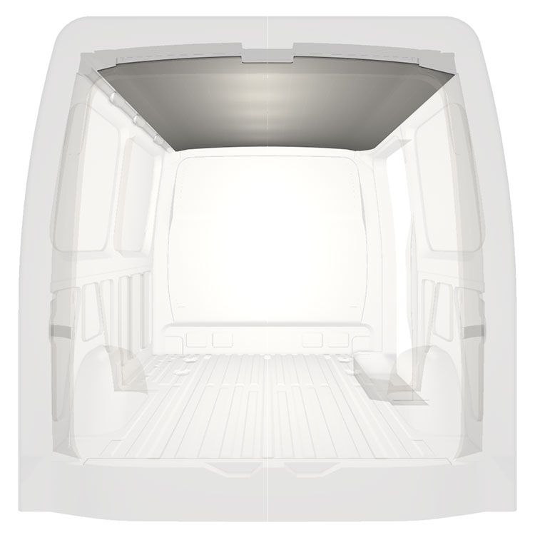 Revêtement léger pour toit d’une Mercedes Sprinter. Le revêtement de toit créera une finition de travail lumineuse à l'intérieur et un environnement professionnel convivial.
