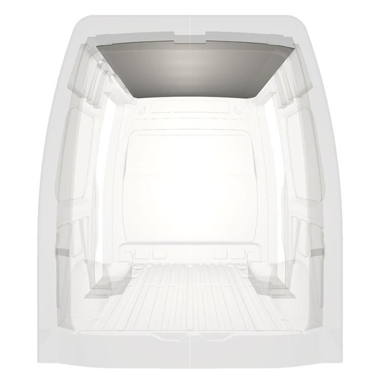 Revêtement léger pour toit d’une Mercedes Sprinter. Le revêtement de toit créera une finition de travail lumineuse à l'intérieur et un environnement professionnel convivial.